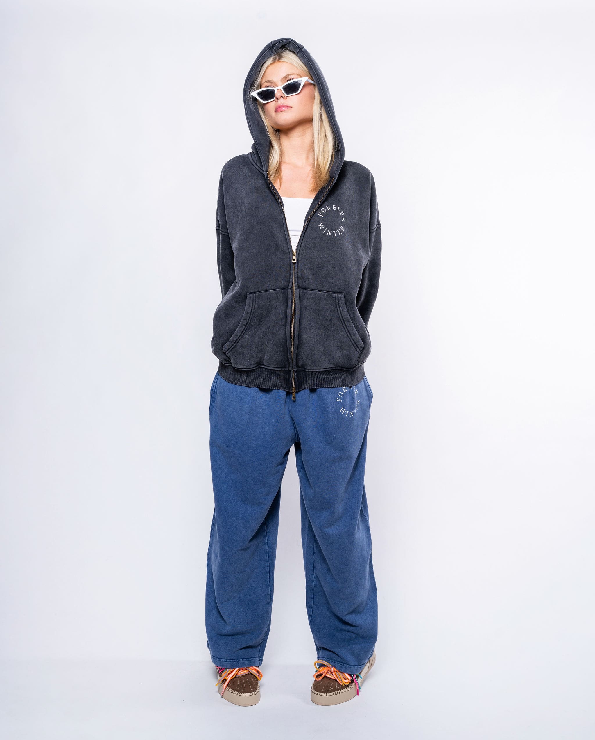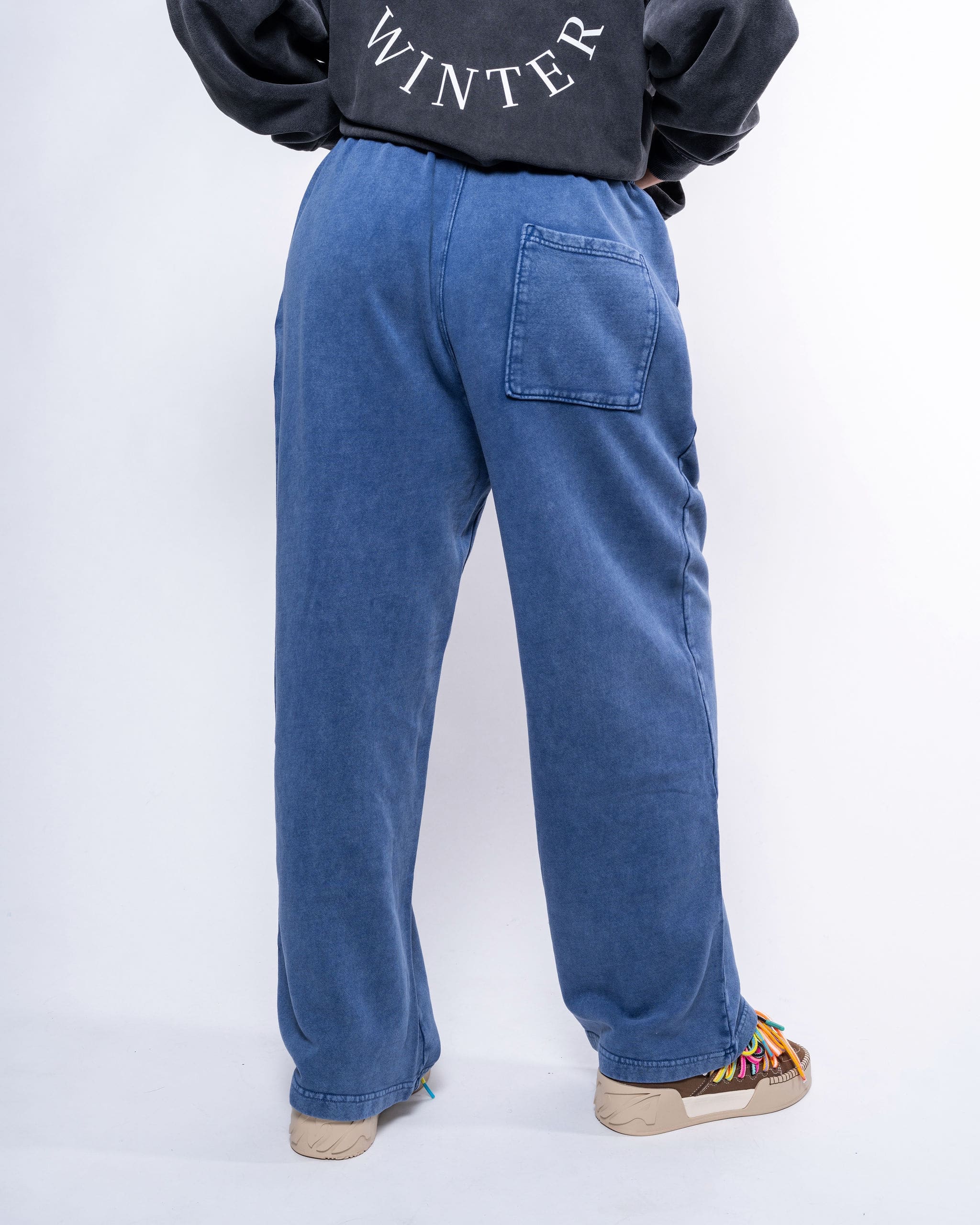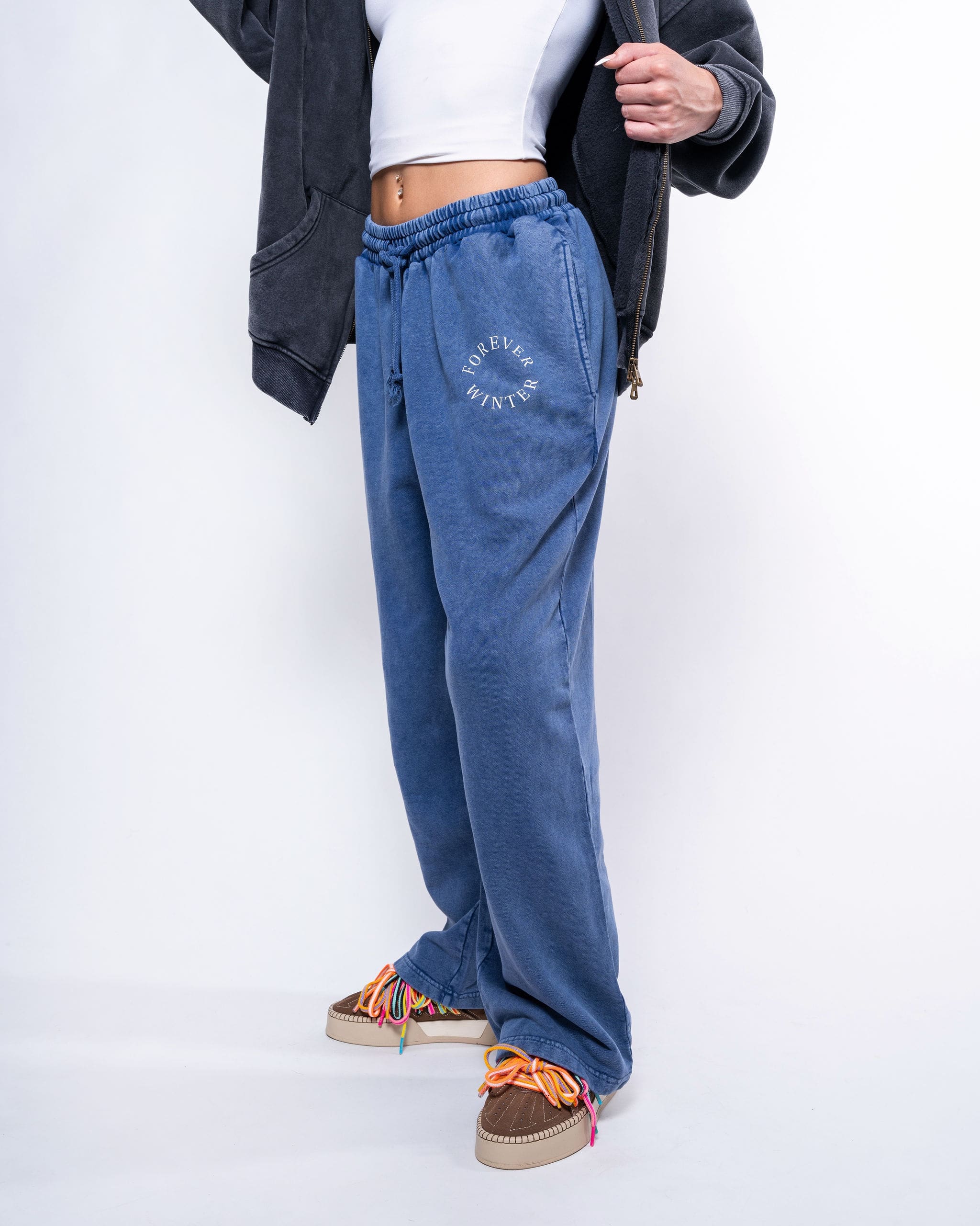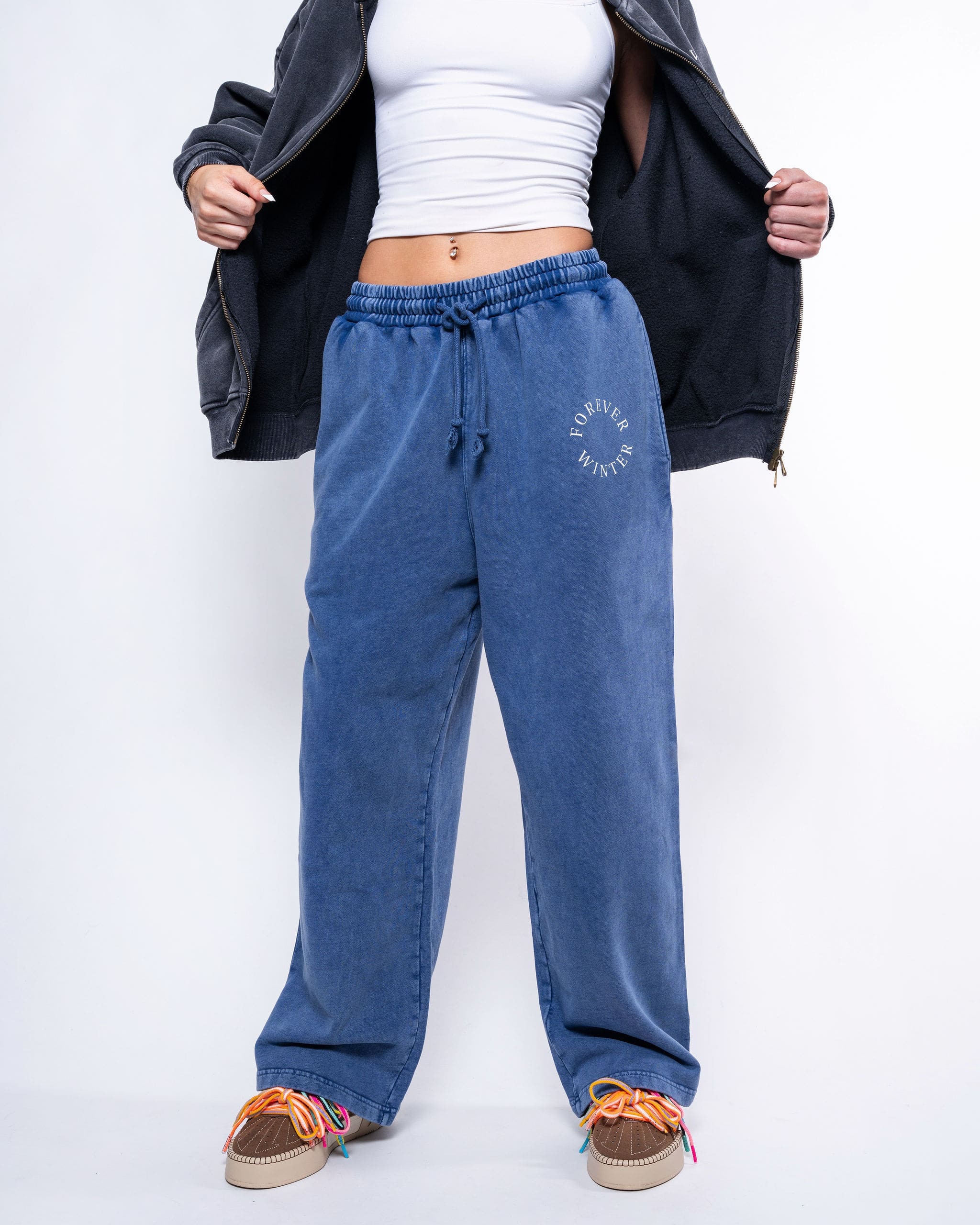 The Forever Winter Snow Fade Wide Leg Pants in Summit Blue bring effortless vintage style to modern comfort.